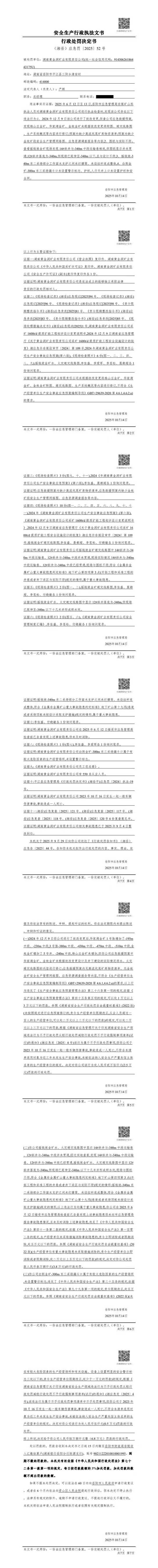 湖南黄金洞矿业公司处罚决定书