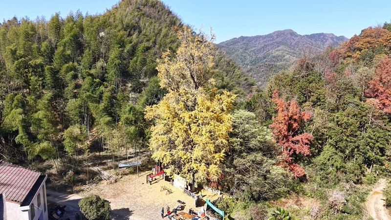 目前,古树周边茶马古道修复开放,与九重瀑、梅池古村等串联成自然人文旅游线。每年的11月中下旬,金黄银杏与青石古道、山间云雾相映,地面铺金黄银杏叶,成为摄影与徒步爱好者采风胜地。