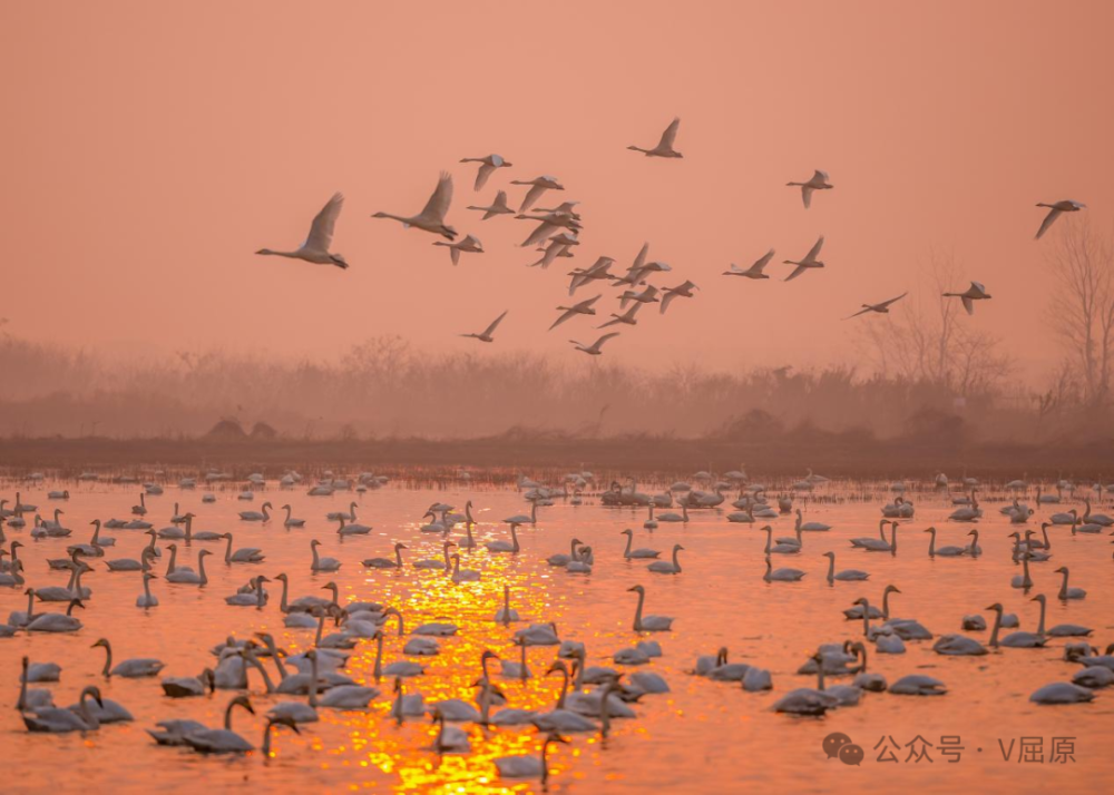 冬日的岳阳,藏着一处 “鸟的天堂、人的乐园”屈原管理区东古湖晨光熹微中,万余西伯利亚小天鹅舒展银白羽翼,掠过如镜湖面,与冬日暖阳、连片稻田、静谧湿地相映成趣,构成一幅灵动绝美的生态画卷。