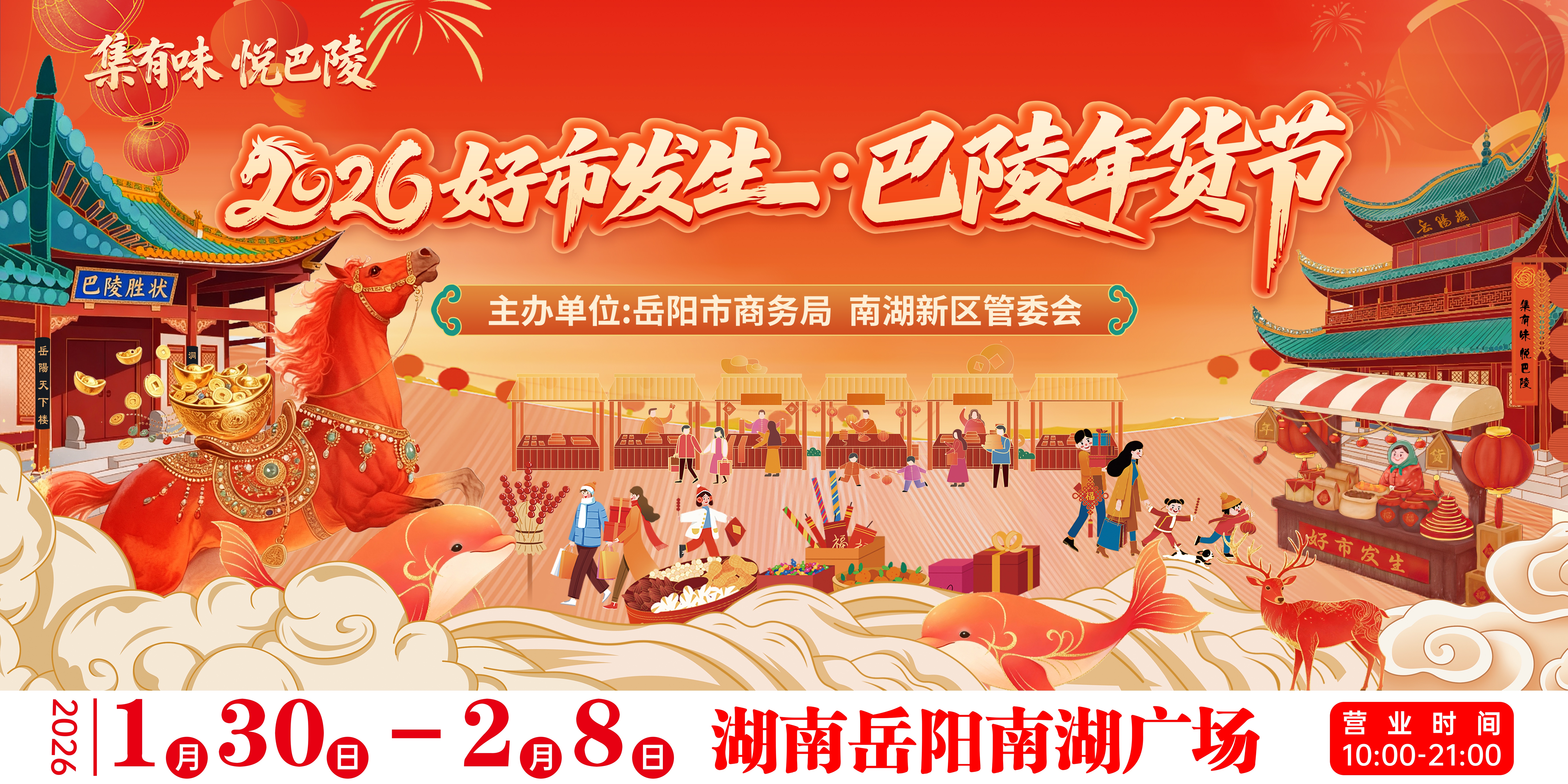 1月30日,备受瞩目的 “2026好市发生・巴陵年货节”将在岳阳南湖广场正式拉开帷幕!为期10天(1月30日 - 2月8日,腊月十二至腊月廿一)的年度消费盛宴,以 “集有味悦巴陵”为主题,融合购物、文化、娱乐、体验多重维度,为市民打造一站式年货采购与新春休闲胜地,助力消费提质扩容,彰显岳阳城市魅力。