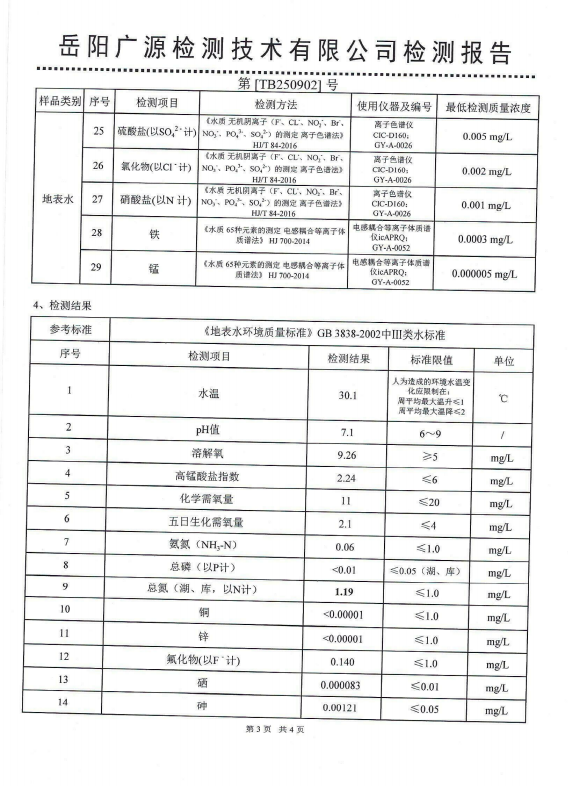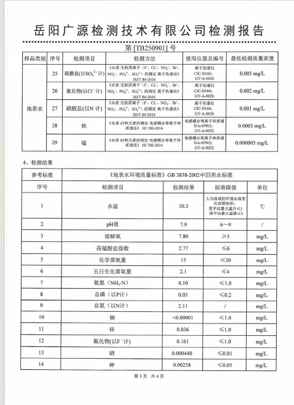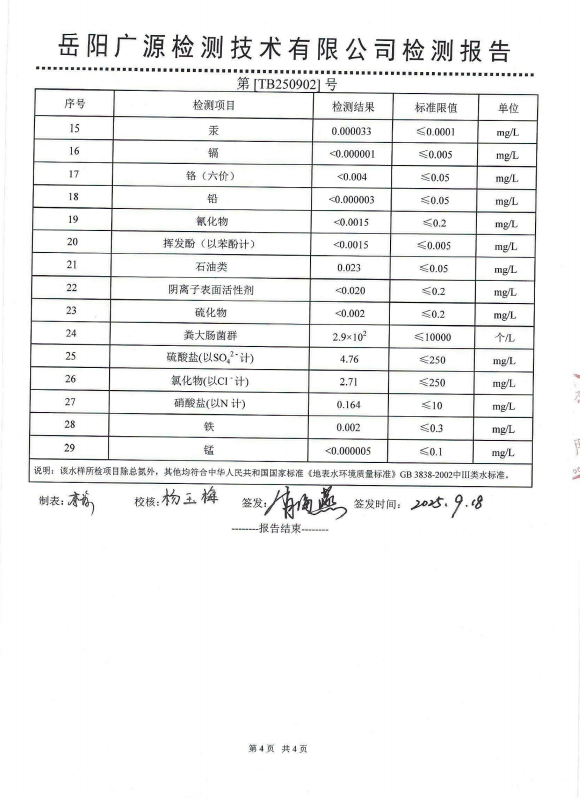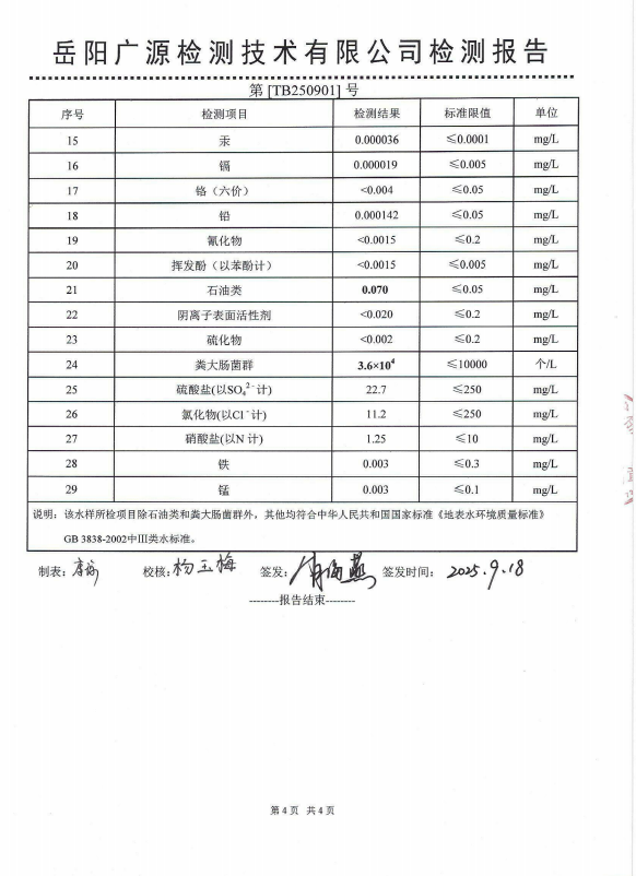 2025年9月岳阳市水务集团水源水水质检测月报表