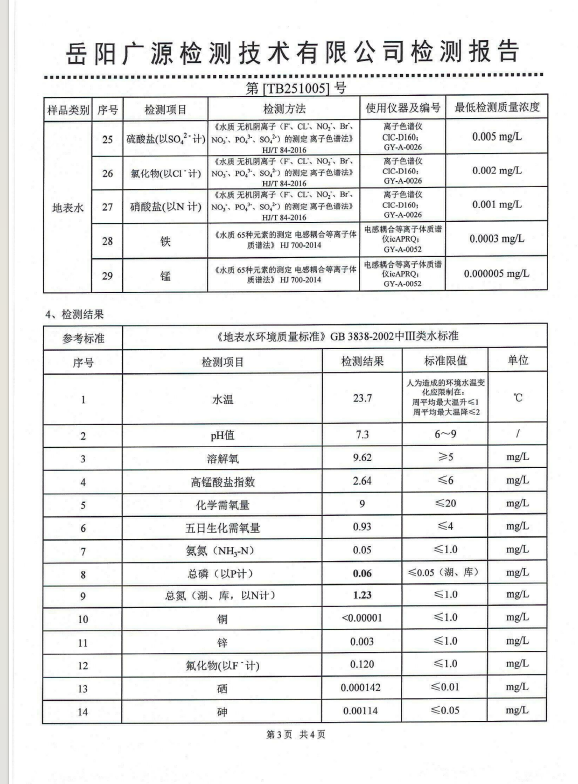 2025年10月岳阳市水务集团水源水水质检测月报表