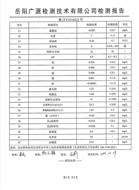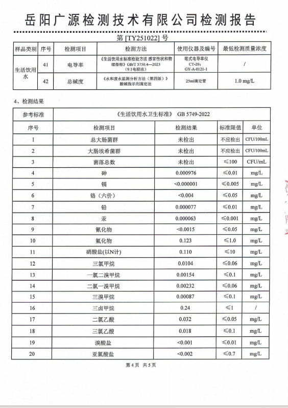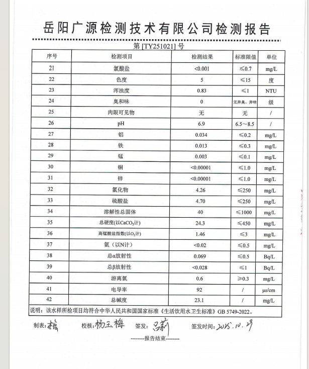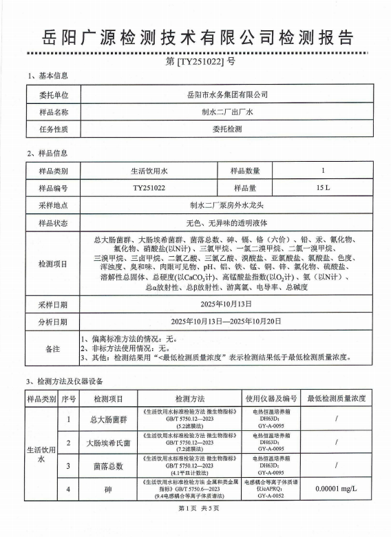2025年10月岳阳市水务集团出厂水水质检测月报表