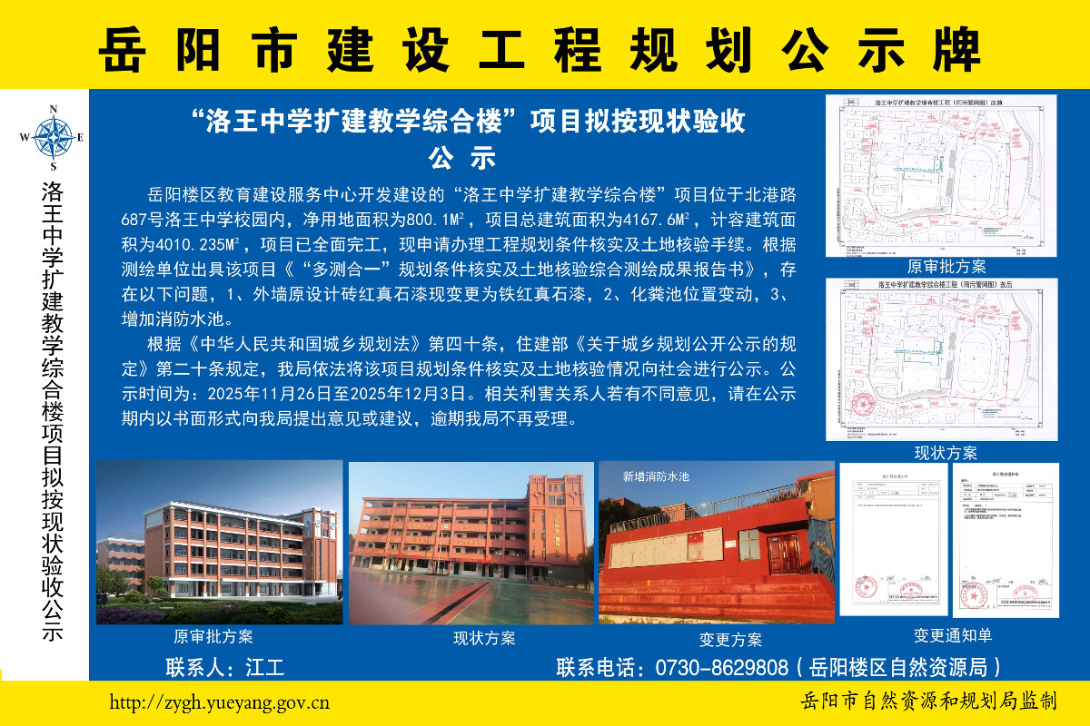 “洛王中学扩建教学综合楼”项目拟按现状验收公示