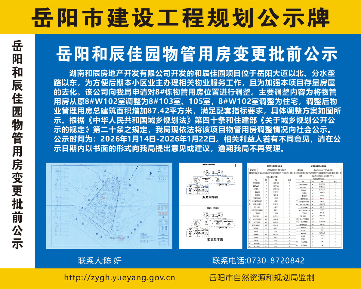 岳阳和辰佳园物管用房变更批前公示
